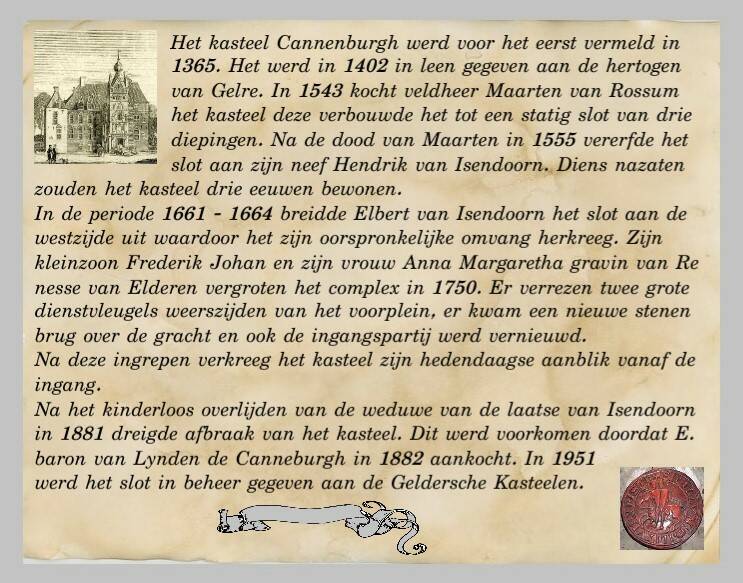 Slot Cannenburgh - Gesticht rond 1365 - In 1543 door Maarten van Rossum herbouwd - Stichting Vrienden der Geldersche Kasteelen.