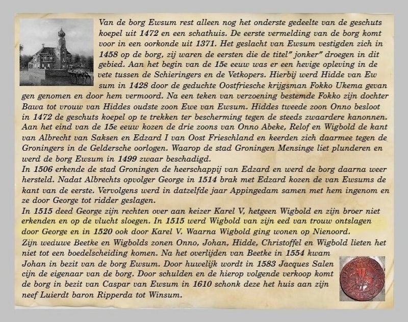 Borg Ewsum bij Middelstum - Gesticht in 1371 - Restant onderste deel van geschutskoepel uit 1472 - Stichting Groninger Borgen.