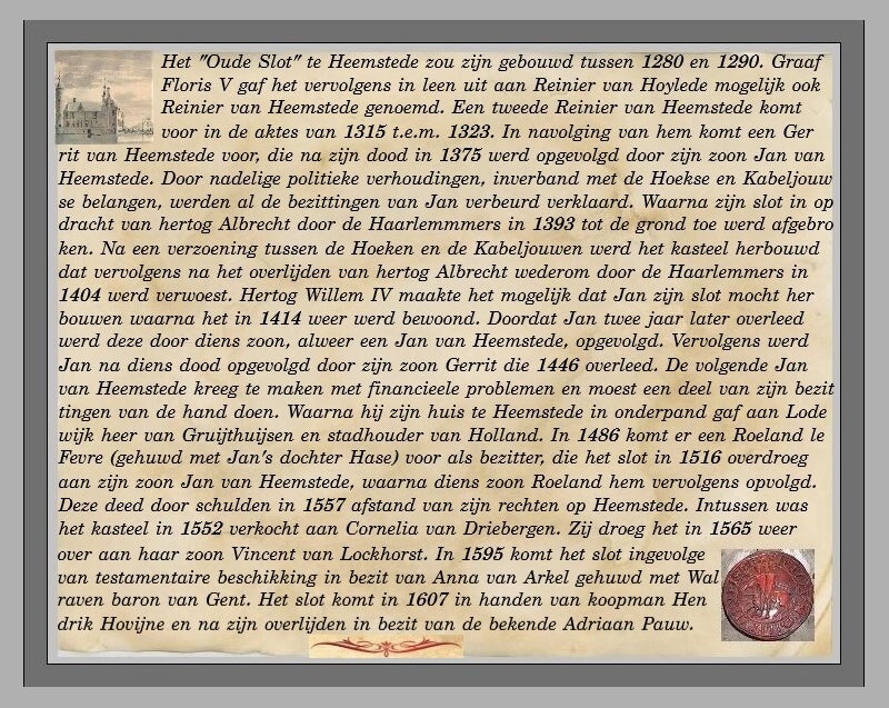 Het Slot te Heemstede - Gesticht rond 1300 - In 1810 afgebroken - Restanten op terrein van verdwenen kasteel - Activiteiten centrum.