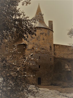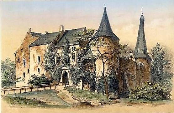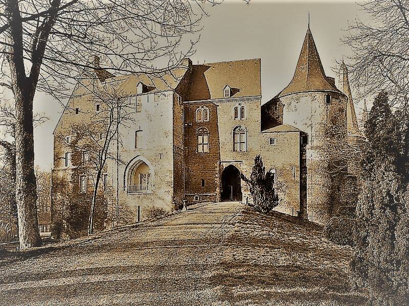 Kasteel Horn - Gesticht 13e eeuw - Voorbeeld van een weerbare burcht - In de 15e eeuw werd het kasteel "De Nijeborgh" te Weert het nieuwe onderkomen van de graven van Horne - Privè bezit.