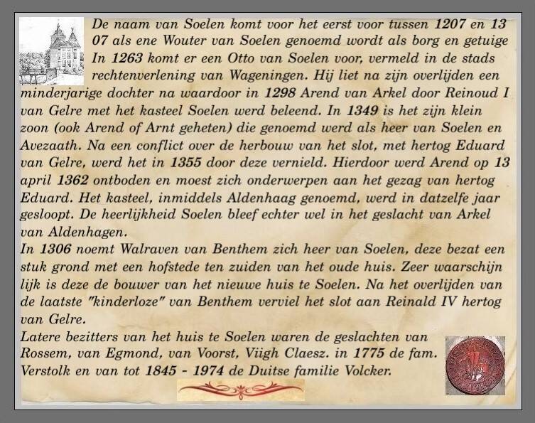 Kasteel Soelen - Gesticht in de 13e eeuw - In 1355 verwoest door hertog Eduard van Gelre - Sinds 1992 Staatseigendom - Bij Zoelen.