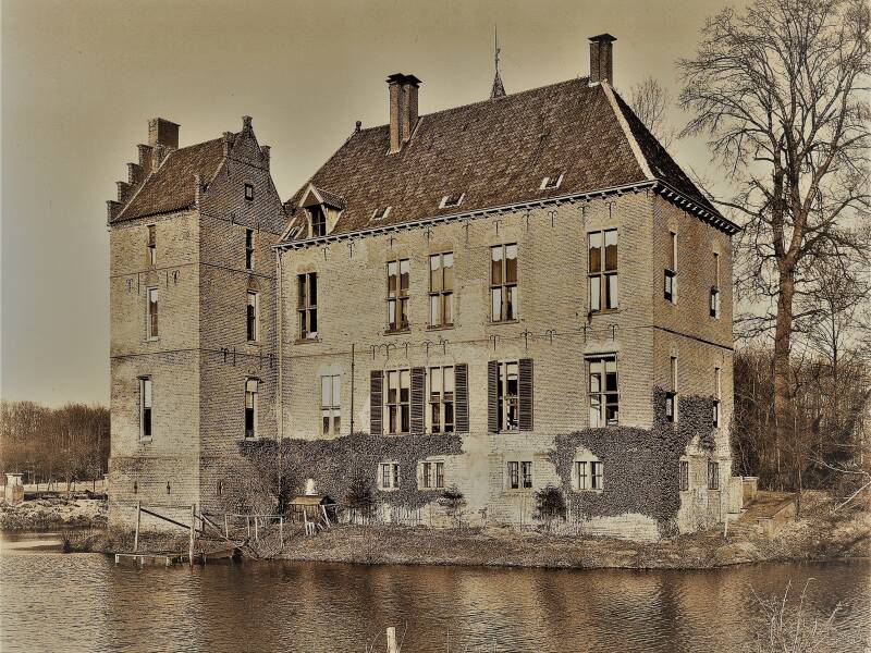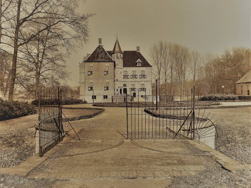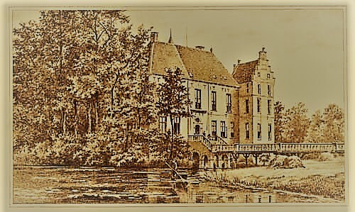 Gesticht in de 13e eeuw - Paulus Antony baron van der Borch tot Verwolde liet na 1871 het kasteel grondig restaureren. Via - Het